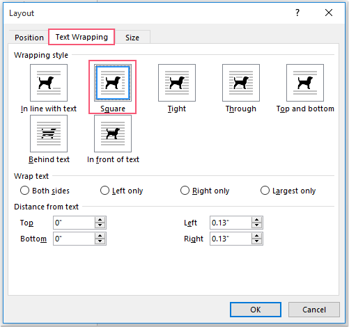 2. Trong Layout, bên dưới Text Wrapping, chọn Square tùy chọn trong Wrapping Style, xem ảnh chụp màn hình: