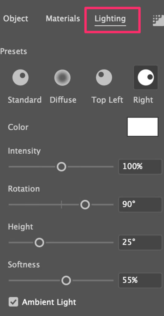 Bạn có thể chọn nơi ánh sáng đến, màu sắc của ánh sáng và điều chỉnh cường độ, góc,…