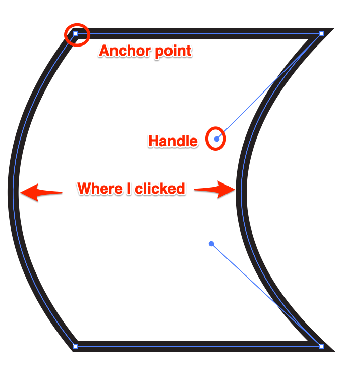 Bước 2: Click vào một đường dẫn và kéo để tạo đường cong. Ví dụ: nhấp và kéo sang trái. Bạn có thể di chuyển tay cầm hoặc Anchor Point để điều chỉnh đường cong.