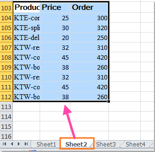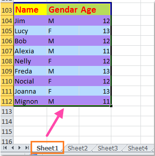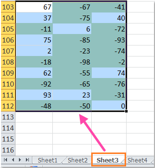 1. Chọn một phạm vi trong trang tính đang hoạt động mà bạn muốn chọn trong tất cả các trang tính. Ví dụ phạm vi A103: C112