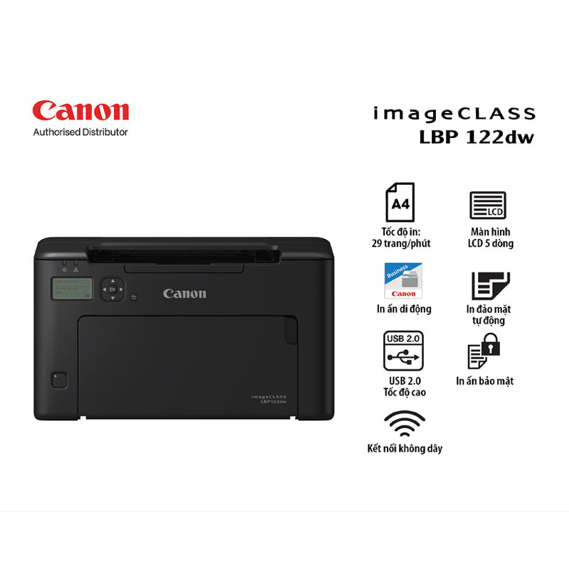 Tên sản phẩm: Máy in laser đen trắng Canon LBP 122DW (In đảo mặt/A4/A5/USB/LAN/WIFI)Giá sản phẩm: 4.990.000₫